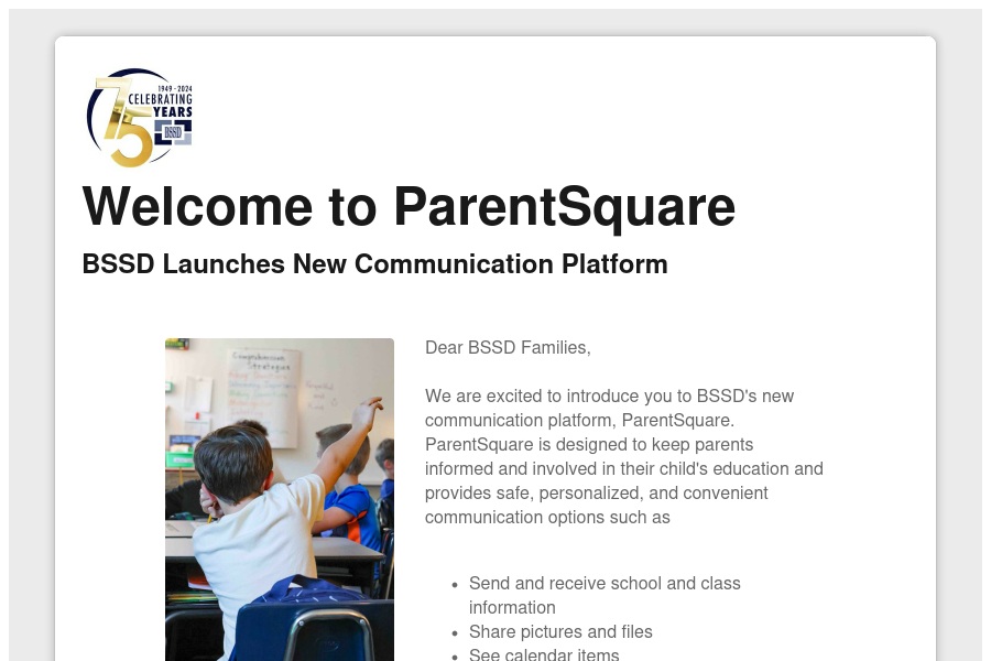 Welcome to ParentSquare BSSD Launches New Communication Platform Dear BSSD Families, Weare excited to introduce you to BSSD's new communication platform, . . .