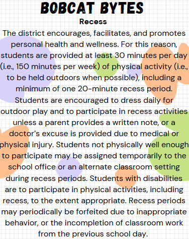 - Visitors and their student(s) will have a designated eating area in our building. Once the student’s lunch period is over, all visitors must leave the building and are not allowed to walk their student to the classroom or attend recess.